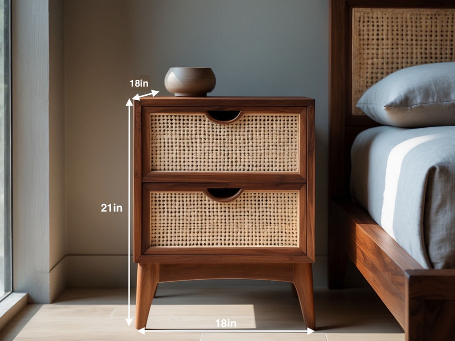 Rooted in natural elegance, the Sol Side Table blends the warmth of Burma teak with artisanal cane drawers in a compact, modern silhouette. Its dual-drawer design offers ample storage while keeping your bedside effortlessly neat. A perfect harmony of nostalgia and contemporary minimalism—crafted to elevate everyday living.